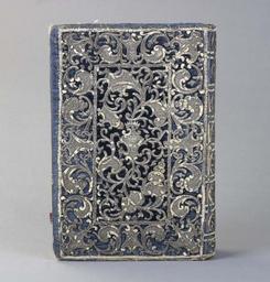 | Keywords: Missale romanum ex decreto sacrosancti Concilii Tridentini--bound with- Collections Missæ propriæ sanctorum plurimorum pontificium decretis ab Alexandro VII. usque ad Clementem XI. pontifice - Lower cover (C188c5).jpg Style Armorial All over design; Caption Lower cover; Colour Blue Silver; Edge Gilt Gauffered exhibition history Decorative Technique Embroidered; Cover Material Velvet 4 purple and cream striped cloth tabs 7 yellow with blue stripes ribbon markers on yellow cloth covered holder with red ribbon White pastedowns cover purple gold embossed decorated paper pastedowns Ink ms notes upper pastedown object history Text 1705; Padua; Unspecified object type Cc-zero place of creation Binding Italy place of discovery Unspecified British Library image http //www bl uk/catalogues/bookbindings/LargeImage aspx RecordId 020-000015189 ImageId ImageId 54693 Copyright BL Missale romanum ex decreto sacrosancti Concilii Tridentini bound with Collections Missæ propriæ sanctorum plurimorum pontificium decretis ab Alexandro VII usque ad Clementem XI pontificem maximum in missali romano appositæ Panormi Ex Typographia Regia Jacobi Epiro 1718 Uploaded with GWToolset Missale romanum ex decreto sacrosancti Concilii Tridentini bound with Collections Missæ propriæ sanctorum plurimorum pontificium decretis ab Alexandro VII usque ad Clementem XI pontifice - Lower cover C188c5 http //www webarchive org uk/bldatasets/bindings/c188c5 jpg Bookbinding 18th-century bookbinding British Library Bookbindings |