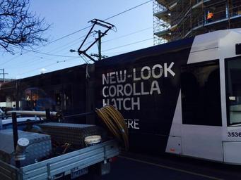 Keywords: I am Ben from Melbourne, Victoria, Australia. I saw a Toyota advertisement on the new “Corolla Hatch”. Unfortunately, the installation of the advertisement on the tram was poorly placed. As you can see that the advertising message was missing. Where it should state “New Look, Corolla Hatch”. The message is lost due to the tram design.