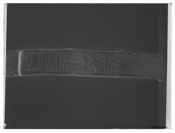 | Keywords: Mitra för dignitär inom den ryska ortodoxa kyrkan - Livrustkammaren - 62286-negative.tif LSH artwork sv Krigsbyge från Narva Mitra av hattformig modell med cylindrisk kulle med svagt rundad kant Vulstformigt brätte b ca 30 mm klätt med pergament ursprungligen med skinn Kullen klädd med delvis mycket slitet karminrött siden nertill vid brättet ring av förgylld silverplåt b 30 mm med graverad gammalslavisk text översättning se Bodin År 7 159 november 17 dagen gav statssekreteraren Michail Danilovs hustru änkan Uljana dotter till Vasilij denna biskopsmössa till Tjudovklostret till den undergörande Aleksijs hem till minne av sin make Michail Danilovitj eremitmunken Misail och sin dotter Ksenia för sin själDärovanför en krans med sex ursprungligen nio helgonbilder graverade på rektangulära plåtar med trepassformig överdel mellersta bågen spetsig h 83 mm b 58 mm gammalslaviska texter 1 - ett manligt helgon med otydlig text pete ; 2 - ärkeängeln Gabriel achange gabri ; 3 - Maria mrthy mätär Theo - Guds moder ; 4 - ärkeängeln Mikael achage michail ; 5 - evengelisten Petrus apoto petr ; 6 - helgon i biskopsdräkt st alekse miro På kullens översida en krans med nio runda plåtar med serafer och keruber fyra stycken med text serafim fem med cherubi Mitt på kullen en stor rund plåt d 102 5 mm med Maria och Jesusbarnet text mrthy Guds Moder Runt plåtarna broderier med silke silvertråd och -paljetter två ovala genomborrade glaspärlor bevarade Hatten invändigt stoppad och klädd med blekrött siden original caption Slaget vid Narva 1650 silver - silk Färg röd karminröd material siden - parchment size mm 195 kulle size mm 265 bräm g 6145 size mm 150 ca LRK Karl XII av Sverige Mille ans de tradition chret 1988-1989 Kungens lockpipa 1995-1996 Karl XII och Peter den store Peter den store och Karl XII - i krig och fred 1998-1999 Livrustkammaren Krigsbyte 2007-2008 300-årsminnet av slaget vid Poltava / Poltava 300 Years Eremitaget och Kreml-museet 2009-2010 Livrustkammaren nya basutställning 2018 LRK bas 2018 Livrustkammaren apoto Petr S t Petrus Per achage michail Mikael st alekse miro S t Alexej Miro mrthy Mätär Theou - Guds Moder Maria achange gabri Gabriel place of origin original filename LN_E02383 42045 inventory number LRK 5388 62286 CC0 Mitra för dignitär inom den ryska ortodoxa kyrkan - Livrustkammaren - 62286 tif <gallery caption Different images of same object > File Mitra för dignitär inom den ryska ortodoxa kyrkan - Livrustkammaren - 79407 tif File Mitra Tchudov-klostret - Livrustkammaren - 38923 tif File Mitra för dignitär inom den ryska ortodoxa kyrkan - Livrustkammaren - 10922 tif File Mitra för dignitär inom den ryska ortodoxa kyrkan - Livrustkammaren - 2362 tif File Rysk-ortodox mitra från 1650 - Livrustkammaren - 47481 tif File Mitra för dignitär inom den ryska ortodoxa kyrkan - Livrustkammaren - 53725 tif File Helbild mitra - Livrustkammaren - 9793 tif File Mitra för dignitär inom den ryska ortodoxa kyrkan - Livrustkammaren - 70848 tif File Mitra ovanifrån - Livrustkammaren - 18355 tif </gallery> <gallery caption Related objects > File Mässkåpa - Livrustkammaren - 68556 tif LRK 19520 File Rysk mässkåpa - Livrustkammaren - 5042 tif LRK 19520 File Mässkåpa rysk detalj - Livrustkammaren - 25085 tif LRK 19520 File Mässkåpa rysk detalj - Livrustkammaren - 16523 tif LRK 19520 File Rysk mässkåpa - Livrustkammaren - 35643 tif LRK 19520 File Rysk mässkåpa - Livrustkammaren - 231 tif LRK 19520 File Rysk patriarksköld - Livrustkammaren - 26429 tif LRK 19521 File Rysk mässkåpa - Livrustkammaren - 77275 tif LRK 19520 </gallery> |