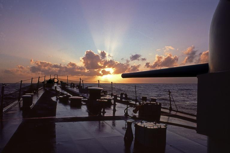 | Keywords: Mitscher DDG35 Sunrise Jan 1975.jpg Sunrise on the U S Navy guided missile destroyer USS Mitscher DDG-35 north of Puerto Rico January 1975 Own 1975-01 ET1 Michael Holley Swtpc6800 Kodachrome 35-mm transparency taken with a Yashica TL Electro SLR camera Scanned with an Epson Perfection V500 Photo File Mitscher DDG35 Cuba Jan 1975 jpg Scanned with Epson Perfection V500 USS Mitscher DDG-35 Photographs by User Swtpc6800 Photographs taken on Kodachrome film | ||||