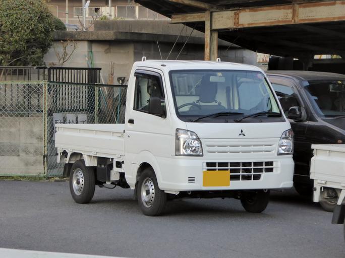 Keywords: Mitsubishi MINICAB TRUCK M (DS16T) front.JPG ja DS16T型三菱・ミニキャブトラックMをフロントから撮影 2015-03-25 18 32 52 own Tokumeigakarinoaoshima other versions cc-zero Uploaded with UploadWizard Mitsubishi Minicab 7th generation White trucks