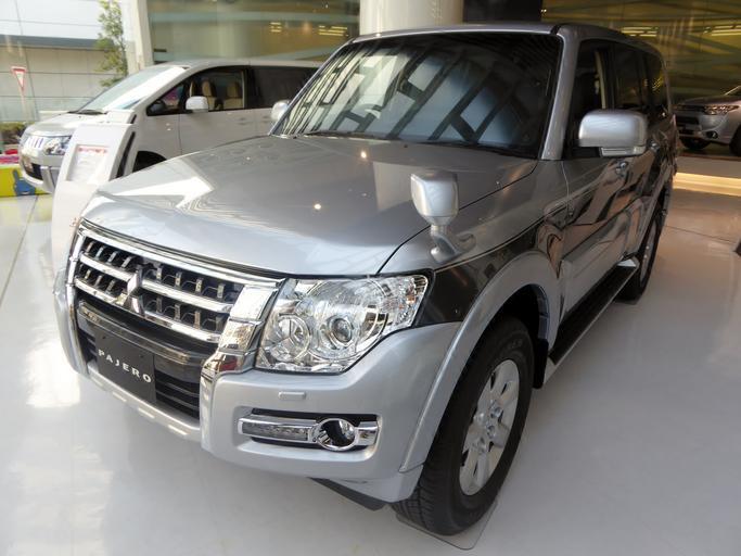 Keywords: Mitsubishi PAJERO EXCEED (V98W) front.JPG ja V98W型三菱・パジェロEXCEEDをフロントから撮影 2015-03-27 13 52 37 own Tokumeigakarinoaoshima other versions cc-zero Uploaded with UploadWizard Mitsubishi Pajero 4th generation Silver SUVs
