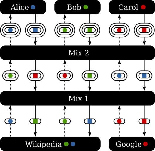 Keywords: Mix receiver anonymity.svg en receiver anonymity scheme for mixes; square anonymous return address; circle message de Empfängeranonymitätsschema für Mixe; Quadrat anonyme Rückadresse; Kreis Nachricht own Bananenfalter cc-zero Mix network
