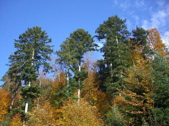 Keywords: mixed forest autumn fall color colorful tree forest sky blue
