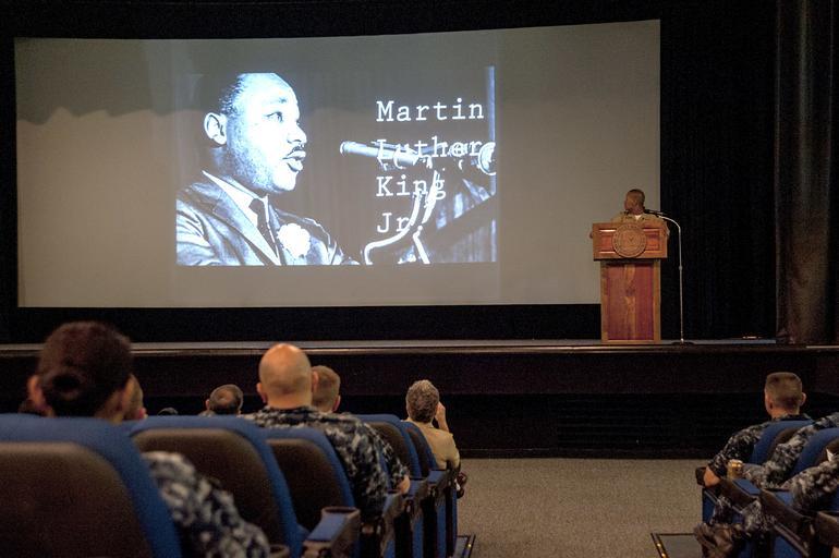 Keywords: MLK ceremony 150120-N-IU636-010.jpg en Service members attend a Dr Martin Luther King Jr day observance event at Sharkey Theater Joint Base Pearl Harbor-Hickam The event allowed those in attendance a chance to honor and reflect on the sacrifices Martin Luther King Jr made in support of equal rights U S Navy photo by Mass Communication Specialist 2nd Class Johans Chavarro/Released 2015-01-20 Petty Officer 2nd Class Johans Chavarro https //www dvidshub net/image/1745289 150120-N-IU636-010 2015-01-31 00 45 PEARL HARBOR HI US PD-USGov-Military-Navy 2015 in Pearl Harbor Martin Luther King Jr Day Images from DoD uploaded by Fæ |