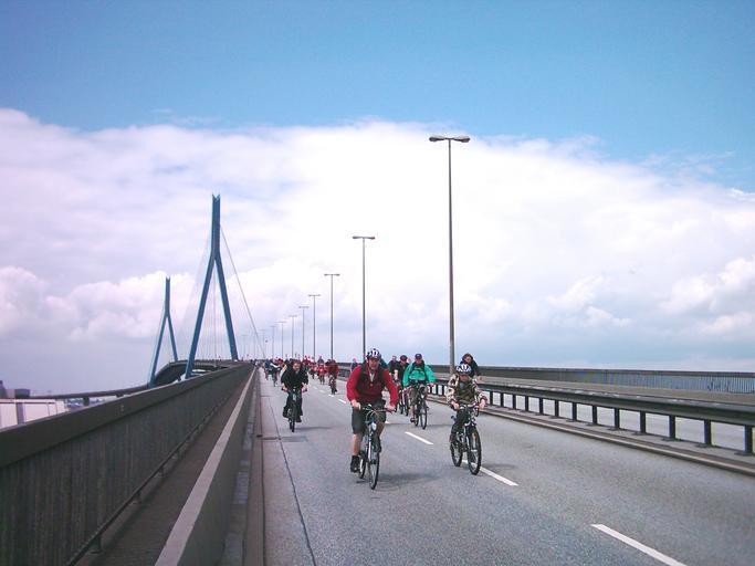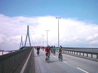 Keywords: MoA Fahrrad-Sternfahrt Hamburg 2007 030.jpg Fahrradsternfahrt in Hamburg am 17 06 07 Auf der Köhlbrandbrücke Blickrichtung Waltershof own Own photo 2007-06-17 GeorgHH Own work all rights released Public domain Köhlbrandbrücke Cycling in Hamburg |