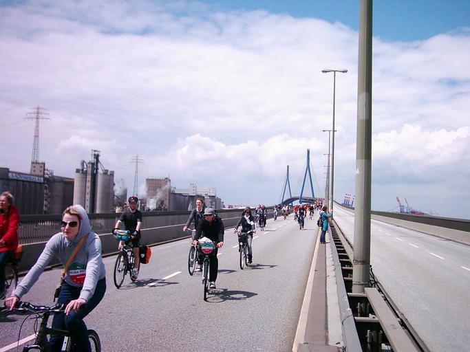 Keywords: MoA Fahrrad-Sternfahrt Hamburg 2007 031.jpg Fahrradsternfahrt in Hamburg am 17 06 07 Auf der Köhlbrandbrücke Blickrichtung Waltershof own Own photo 2007-06-17 GeorgHH Own work all rights released Public domain MoA cycling demonstration