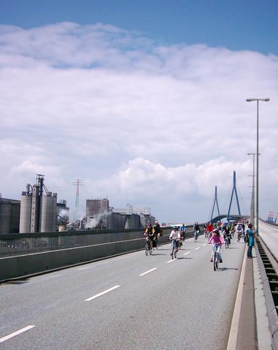 | Keywords: MoA Fahrrad-Sternfahrt Hamburg 2007 032.jpg Fahrradsternfahrt in Hamburg am 17 06 07 Auf der Köhlbrandbrücke Blickrichtung Waltershof own Own photo 2007-06-17 GeorgHH Own work all rights released Public domain MoA cycling demonstration Cycling in Hamburg |