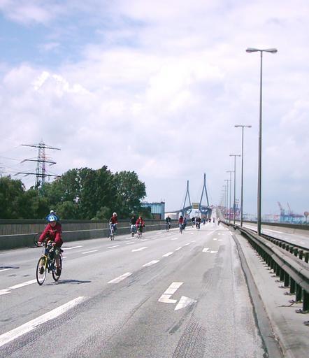 Keywords: MoA Fahrrad-Sternfahrt Hamburg 2007 033.jpg Fahrradsternfahrt in Hamburg am 17 06 07 Auf der Köhlbrandbrücke Blickrichtung Waltershof own Own photo 2007-06-17 GeorgHH Own work all rights released Public domain Köhlbrandbrücke Cycling in Hamburg |