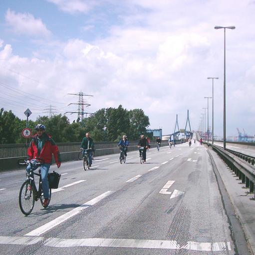 Keywords: MoA Fahrrad-Sternfahrt Hamburg 2007 034.jpg Fahrradsternfahrt in Hamburg am 17 06 07 Auf der Köhlbrandbrücke Blickrichtung Waltershof own Own photo 2007-06-17 GeorgHH Own work all rights released Public domain MoA cycling demonstration Cycling in Hamburg |