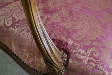 Keywords: Möbeltyg, 1840 cirka - Skoklosters slott - 103898.tif LSH artwork H Amand möbelsnickare sv Svängda ben med käl och bandomlindade vulstknippen som direkt övergår i sargen på samma sätt dekorerad ram till stoppad konturerad rygg Mitt på sargens framsida och på ryggens överstycke skulpterade rosor och rocailler <br/>Utåtsvängda armstöd med stoppning Sits och rygg samt armstödens stoppning klädda med rött-gulmönstrat fibertyg bomull och obearbetad fiber av manillahampa <br/>Klädseln spikad med mässingstännlikor <br/>Omkring 1700-talets mitt <br/>Tygklädseln från ca 1840 <br/>Stämplade på ena ryggstolpens baksida ME H AMAND menusier ebeniste Paris <br/>Märkta <br/>1775 1 På sargens bakre insida J med blyerts <br/>1775 2 På sargens främre insida I samt oläslig skrift med blyerts på vänstra och högra insidan xe <br/>1775 3 Märkt s 1775 2 men Ret på vänstra insidan <br/>1775 4 På sargens främre insida I på dess vänstra insida + med blyerts På sidornas insida inristat romb <br/>1775 5 På sargens främre insida I med blyerts <br/>1775 6 På sargens främre insida x med svart färg tre ggr På sidornas insida 3 med blyerts På bakre insidan L original caption Möbeltyg 1840 cirka <br/> Nyckelord Inredning Stol Föremålsbild Röd ca 1750 size mm 760 700 1020 SKO M E place of origin original filename sm_dig11816 23029 inventory number SKO 1775 103898 CC-BY-SA Jenny Bergensten <gallery caption Different images of same object > File Undersidan av stol - Skoklosters slott - 103893 tif File Fåtölj - Skoklosters slott - 103909 tif File Fåtölj 1750 cirka - Skoklosters slott - 103912 tif File Länstol 1750 cirka - Skoklosters slott - 103891 tif File Fåtölj undersidan 1750 cirka - Skoklosters slott - 103913 tif File Fåtölj - Skoklosters slott - 103910 tif File Undersidan av stol - Skoklosters slott - 103896 tif File Undersidan av sits - Skoklosters slott - 103917 tif File Möbeltyg 1840 cirka - Skoklosters slott - 103899 tif File Länstol - Skoklosters slott - 103890 tif File Undersidan av stol - Skoklosters slott - 103897 tif File Länstol - Skoklosters slott - 103888 tif File Fåtölj undersidan - Skoklosters slott - 103915 tif File Undersidan av stol - Skoklosters slott - 103895 tif File Länstol - Skoklosters slott - 103889 tif File Fåtölj från sidan 1750 cirka - Skoklosters slott - 103911 tif File Stol med randigt möbelöverdrag - Skoklosters slott - 98198 tif File Underdel av länstol 1750 cirka - Skoklosters slott - 103892 tif File Undersidan av stol - Skoklosters slott - 103894 tif File Fåtölj undersidan - Skoklosters slott - 103916 tif File Valnötsstol med mönstrat fibertyg bomull och obearbetad fiber av manillahampa från 1750 - Skoklosters slott - 98199 tif File Fåtölj undersidan 1750 cirka - Skoklosters slott - 103914 tif </gallery> Chairs Interiors Red Jenny Bergensten Media contributed by LSH unmatched creator Media contributed by LSH 2015-11 |