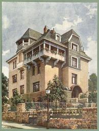 Keywords: Moderne Villen in Meisteraquarellen Serie II Tafel 038 Wiesbaden Villa Dambachtal 18.JPG Wiesbaden Architekt Friedrich W Werz und Paul Huber Tafel 38 aus Oscar Grüner Moderne Villen in Meisteraquarellen Serie II 64 Tafeln Verlag Friedrich Wolfrum Co Wien und Leipzig ca 1905 Hochschulbibliothek Georg-Simon-Ohm-Hochschule Nürnberg http //bvbm1 bib-bvb de Oscar Grüner / Verlag Friedrich Wolfrum Co ca 1905 Villas in Wiesbaden History of Wiesbaden Watercolor paintings of houses Watercolor paintings in Germany 1900s watercolor paintings Moderne Villen in Meisteraquarellen Serie II PD-old |