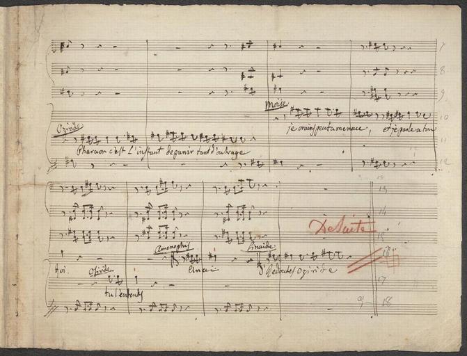 | Keywords: Moïse 3.jpg Moïse French version Section of the ensemble beginning with the words of Moses Je réclame la foi promise Pharaon marked Dopo il Ballo Full score Manuscript in Rossini's handwriting page 3 of 4 Library of Congresshttp //hdl loc gov/loc music/molden 3329 ca 1818 Gioachino Rossini PD-old Mosè in Egitto 1818 |