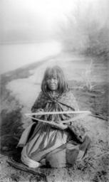 | Keywords: Mojave Indian woman making a beadwork belt with heart-shaped designs, ca.1900 (CHS-3980).jpg Mojave Indian woman making a beadwork belt with heart-shaped designs ca 1900 She is kneeling on the ground with the rack for the belt held in her left hand She is wearing a brightly patterned cloth tied about her shoulders and a long dress She is sitting on the ground outdoors near a body of water in the background at left To the far right tall vegetation is visible ---- Call number CHS-3980 Photographer James George Wharton Filename CHS-3980 Coverage date circa 1900 Part of collection California Historical Society Collection 1860-1960 Type images Part of subcollection Title Insurance and Trust and C C Pierce Photography Collection 1860-1960 Repository name USC Libraries Special Collections Format glass plate negatives Microfiche number 1-173-; 1-163- Archival file chs_Volume96/CHS-3980 tiff Repository address Doheny Memorial Library Los Angeles CA 90089-0189 Geographic subject country USA Format aacr2 3 photographs glass photonegative photoprints b w ; 21 x 13 cm 21 x 26 cm Rights Digitally reproduced by the USC Digital Library; From the California Historical Society Collection at the University of Southern California Subject adlf tribal areas Project USC Accession number 3980 Repository email specol usc edu Contributing entity California Historical Society Date created circa 1900 Publisher of the digital version University of Southern California Libraries Format aat photographic prints; photographs Legacy record ID chs-m16512; USC-1-1-1-13931 Access conditions Send requests to address or e-mail given Phone 213 821-2366; fax 213 740-2343 Subject file heading Indians -- Mojave Subject lcsh Indians of North America; Mohave Indians; Clothing and dress; Women Subject Mojave Indians; Indians; Mojave Indians -- Blanket Making etc circa 1900 date created James George Wharton http //digitallibrary usc edu/cdm/ref/collection/p15799coll65/id/16450 PD-old-70-1923 Mohave 1900 Native American artists Mohave Women at work in California Mohave 1900 in California Mohave Black and white portrait photographs of women of the United States California Photographs of the Indigenous peoples of North America Mojave Images from USC Digital Library uploaded by Fæ California Historical Society Collection 1860-1960 Glass plate negatives Photographs by George Wharton James |