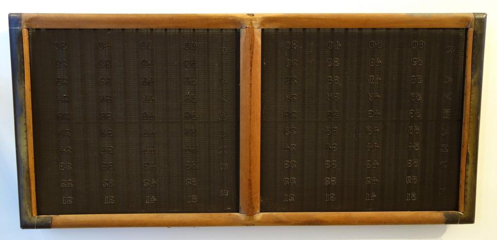 Keywords: Mold and deckle - Robert C. Williams Paper Museum - DSC00714.JPG en Exhibit in the Robert C Williams Paper Museum Atlanta Georgia USA This work is old enough so that it is in the public domain Photography was permitted in the museum without restriction 2014-03-20 14 02 01 own Daderot PD-old-100 cc-zero Paper moulds in the Robert C Williams Paper Museum Uploaded with UploadWizard |