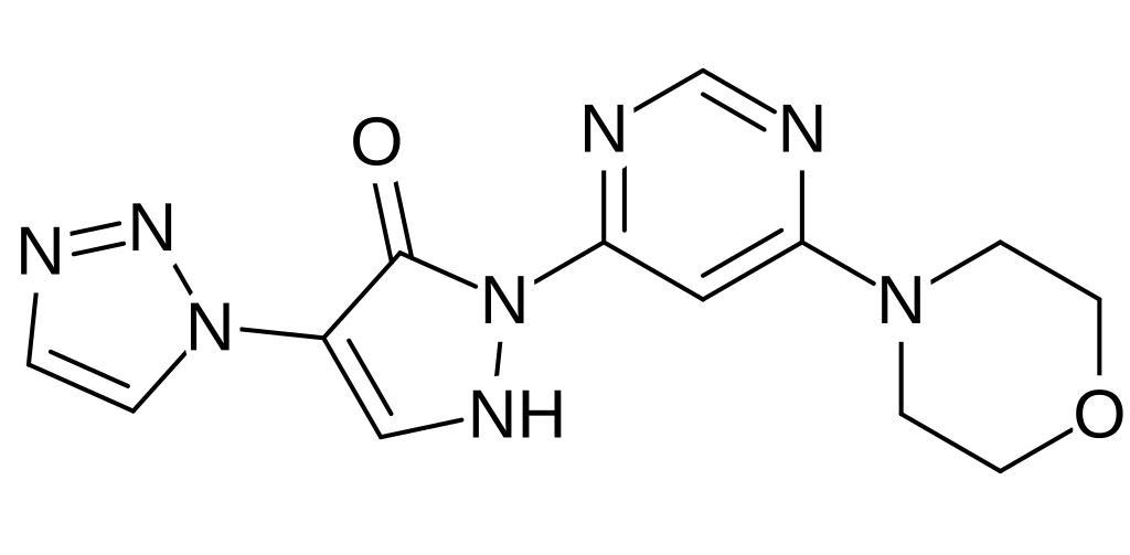 Keywords: Molidustat.svg Chemical structure of molidustat BAY 85-3934 Own 20 03 13 January 2014 UTC Ed Edgar181 Pyrazolones Triazoles Aminopyrimidines Morpholines