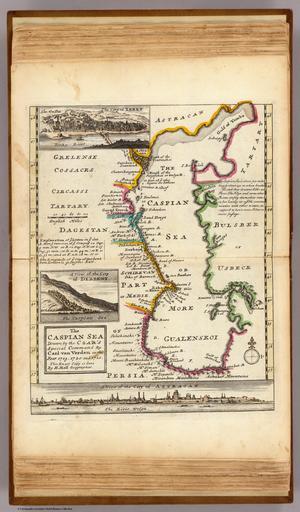 | Keywords: Moll, Herman. Caspian Sea, Terky, Derbent, Astracan. 1736.jpg en The Caspian Sea Drawn by the Czar's Special Command by Carl van Verden in the year 1719 1720 and 1721 This exact copy is done by H Moll Geographer with view The Castle the City of Terky with A view of the City of Derbent with A view of the City of Astracan Printed and sold by T Bowles next ye Chapter House in St Pauls Church yard I Bowles at ye Black Horse in Cornhill 1736 http //www davidrumsey com/luna/servlet/detail/RUMSEY~8~1~3738~430074 www davidrumsey com 1736 Carl van Verden and Creator Herman Moll PD-Art-100 Herman Moll Old maps of the Caspian Sea Old maps of the Caucasus Old maps of the Russian Empire 18th-century maps of Azerbaijan Maps of the history of Dagestan 1736 maps David Rumsey Historical Map Collection Carl Van Verden Old maps of Shirvan |