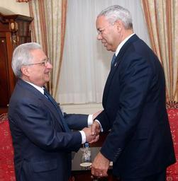 Keywords: Molyriatis-Powell.jpg en Bureau of Public Affairs 59th United Nations General Assembly New York City September 22 2004 Secretary of State Colin Powell with Greek Foreign Minister Petros Molyviatis both attending the 59th UN General Assembly in New York State Department photo by Michael Gross http //www state gov/secretary/former/powell/photos/36469 htm State Department photo by Michael Gross 2004-09-22 PD-USGov Images by Alaniaris/PD uploads Colin Powell Petros Molyviatis Relations of Greece and the United States Handshakes involving politicians |