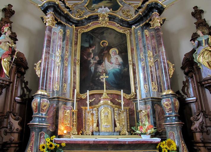 Keywords: Mommenheim StMaurice 18.JPG Alsace Bas-Rhin Mommenheim Église Saint-Maurice Maître-autel XVIIIe Tableau Adoration des bergers M Feuerstein 1891 own 2013 Ralph Hammann cc-by-sa-3 0 Artwork / Œuvre d'art / Kunstwerk Artwork Creator Martin von Feuerstein 1891 oil canvas cm Eglise Saint-Maurice Mommenheim Maître-autel PM67000547 IM67007164 object history Tableaux d'origine des contretables disparus ; le tableau du maître-autel devait représenter saint Maurice cartouche avec initiales S M ; ceux des couronnements par G Huss datent de 1877 ceux des contretables par Martin Feuerstein de 1891 à 1893 ; les autels les retables et le tabernacle sont du 18e siècle other versions Ralph Hammann sur le tableau du Dieu le Père signature nom des donateurs date 1877 ; signature et dates 1893 sur l'Annonciation 1892 sur le saint François 1891 sur l'Adoration des bergers PD-old accession number Photographs of Mommenheim by Ralph Hammann Taken with Canon PowerShot SX20 IS Choir altar of Église Saint-Maurice de Mommenheim Objets monuments historiques in Bas-Rhin church paintings 19th-century church paintings in Alsace Adoration by the shepherds in paintings 19th-century paintings of adoration by the shepherds Martin von Feuerstein 1891 works in Alsace |