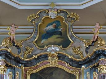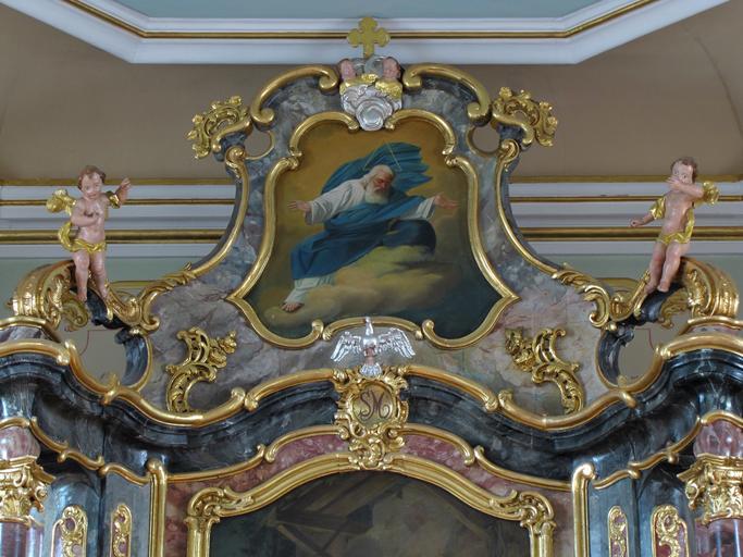 Keywords: Mommenheim StMaurice 19.JPG Alsace Bas-Rhin Mommenheim Église Saint-Maurice Couronnement du maître-autel XVIIIe Tableau Dieu le Père G Huss 1877 own 2013 Ralph Hammann cc-by-sa-3 0 Artwork / Œuvre d'art / Kunstwerk oil canvas cm Eglise Saint-Maurice Mommenheim Couronnement du Maître-autel PM67000547 IM67007164 object history Tableaux d'origine des contretables disparus ; le tableau du maître-autel devait représenter saint Maurice cartouche avec initiales S M ; ceux des couronnements par G Huss datent de 1877 ceux des contretables par Martin Feuerstein de 1891 à 1893 ; les autels les retables et le tabernacle sont du 18e siècle other versions Ralph Hammann sur le tableau du Dieu le Père signature nom des donateurs date 1877 ; signature et dates 1893 sur l'Annonciation 1892 sur le saint François 1891 sur l'Adoration des bergers PD-old accession number Photographs of Mommenheim by Ralph Hammann Taken with Canon PowerShot SX20 IS Choir altar of Église Saint-Maurice de Mommenheim Objets monuments historiques in Bas-Rhin church paintings 19th-century church paintings in Alsace Paintings of God the Father 1877 works in Alsace Wooden reliefs in Bas-Rhin Baroque reliefs in Alsace |