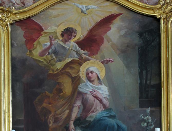 Keywords: Mommenheim StMaurice 40.JPG Alsace Bas-Rhin Mommenheim Église Saint-Maurice Autel secondaire de la Vierge XVIIIe Tableau Annonciation M Feuerstein 1893 own 2013 Ralph Hammann cc-by-sa-3 0 Artwork / Œuvre d'art / Kunstwerk Artwork Creator Martin von Feuerstein 1893 oil canvas cm Eglise Saint-Maurice Mommenheim Autel secondaire nord PM67000546 PM67000545 IM67007164 object history other versions Ralph Hammann sur le tableau du Dieu le Père signature nom des donateurs date 1877 ; signature et dates 1893 sur l'Annonciation 1892 sur le saint François 1891 sur l'Adoration des bergers PD-old accession number Photographs of Mommenheim by Ralph Hammann Taken with Canon PowerShot SX20 IS Autels secondaires Église Saint-Maurice de Mommenheim Objets monuments historiques in Bas-Rhin church paintings 19th-century church paintings in Alsace 19th-century paintings of Annunciation Martin von Feuerstein 1893 works in Alsace 1893 oil on canvas paintings in France |