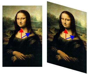 Keywords: Mona Lisa with eigenvector.png On the left a reproduction of the Mona Lisa with a representation of two vectors superimposed on top of it The red arrow represents a vector in three dimensions pointing directly up on the plane of the painting and the blue arrow represents a unique arbitrary vector on the painting On the right is the result of a shear transformation on the image on the left The blue arrow now represents a different vector while the red one still represents the same vector For this reason the red vector is an eigenvector of the transformation and the blue vector is not The image of the Mona Lisa used in this image is Image Mona_Lisa jpeg Arrows created using w Inkscape transformations made using w GIMP 2006-10-20 J Finkelstein credit line en wikipedia Vb Linear functions Derivative works of Mona Lisa Eigenvalue problems |