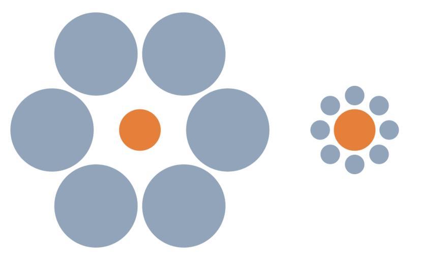 Keywords: Mond-vergleich.svg Mondtäuschung Prinzip der Vergleichsobjekte Die beiden orangen Kreise in der Mitte sind gleich groß Optical illusion The two orange circles are the same size Ilusión óptica Los dos círculos anaranjados son del mismo tamaño Illusion d'optique Les deux cercles oranges sont de la même taille 2006-06-01 own assumed Phrood~commonswiki Ebbinghaus illusion Moon illusions |