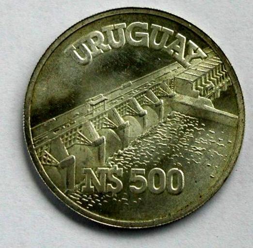 Keywords: Moneda de Inauguración Central Palmar Frente.JPG Moneda de Inauguración de Central Palmar Frente 1983 History of Uruguay Palmar Dam Rio Negro Uruguay Coins of Uruguay Dams in art Rivers of Uruguay in art