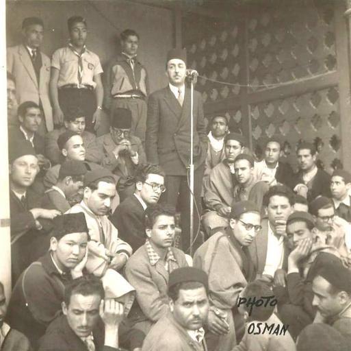 Keywords: Mongi Slim 1950.jpg ar الزعيم المنجي سليم يخطب في إضراب الجوع الذي شنّه الطلبة الزيتونيون يومي 21 و22 أفريل 1950 ويبدو في الصورة جالسا على يمين الخطيب صالح بن يوسف وبجانبه عزوز الرباعي وعبد الكريم قمحة وأمامهما عبد العزيز العكرمي وعلى يمينه عبد الله بوبكر وعلى يسار الخطيب عمر شاشية وأمامه عبد الرحمان الهيلة 1950 facebook author other versions Custom license marker 2015 06 10 PD-Tunisia Uploaded with UploadWizard Mongi Slim |