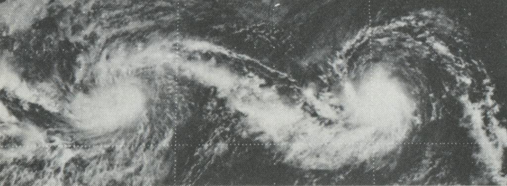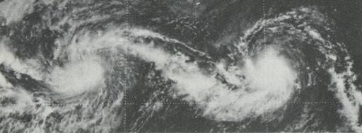 Keywords: Monicananettesep2919751845UTC.gif en This weather satellite image of Tropical Storms Monica and Nanette was taken on September 29 1975 at 1845 UTC 2013-04-06 11 28 13 Mariners Weather Log May 1976 pg 134 NOAA PD-USGov Uploaded with UploadWizard Satellite pictures of multiple tropical cyclones |