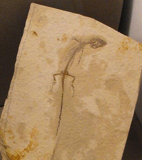 Keywords: Monjurosuchussplendens.jpg en Fossil of Monjurosuchus splendens from Liaoning Province China on display at the San Diego County Fair California USA Own Stickpen 2009-06-29 released to public domain Monjurosuchus Choristodera fossils