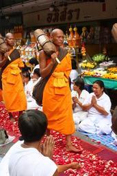 Keywords: monk buddhists monks walk rose petals traditions ceremony volunteer thailand wat phra dhammakaya temple dhammakaya pagoda more than million budhas gold buddhism