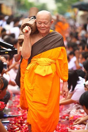 Keywords: monk buddhists walk rose petals tradition ceremony robe orange people thailand thai asia zen wat phra dhammakaya temple dhammakaya pagoda more than million budhas gold buddhism