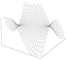 | Keywords: Monkey Saddle Surface (Mesh).png A monkey saddle surface with the equation<br> <math>z x 3-3xy 2 \ </math> Self-made done in MuPad 11/04/0206 Inductiveload Shaded Version saddle point Cubic surfaces Surface plots MuPAD Code This code is more complicated than necessary because is is a slightly altered version of code for a shaded mesh graph <pre> f x 3-3 x y 2 conts 16 projectionlevel -1 5 colourfunc zip RGB Red RGB CornflowerBlue a b -> f x y +1 / 2 a - f x y -1 / 2 b funcplot plot Function3d f x y x -1 1 y -1 1 Mesh 24 24 Submesh 8 8 LineColor RGB Black 0 99 LineWidth 0 1 Filled FALSE FillColorFunction colourfunc AxesTitleFont Courier New 14 ViewingBoxZRange -1 5 1 camera plot Camera 16 -24 30 0 0 -0 25 0 08 ploteverything plot Canvas funcplot Width 200 unit mm Height 150 unit mm Axes Frame TicksVisible FALSE TicksLabelsVisible FALSE AxesTitles camera </pre> |