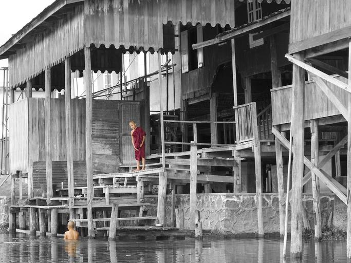 Keywords: monks buddhism inle lake on stilts bathroom water burma