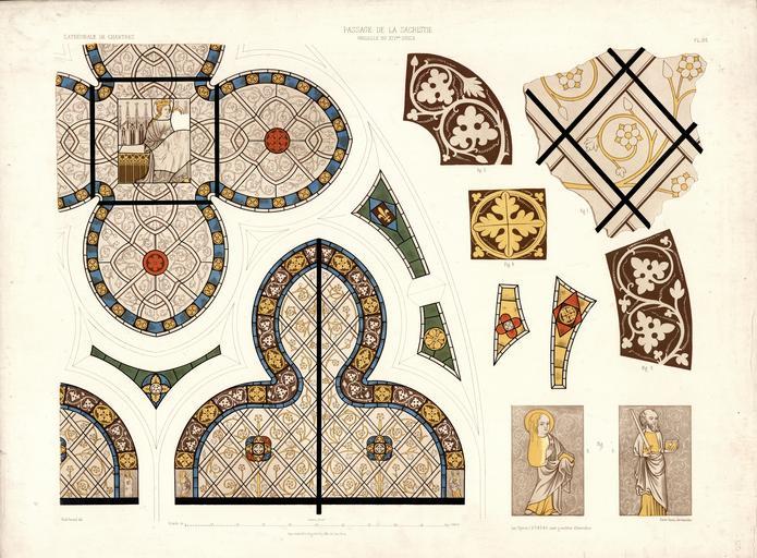 | Keywords: Monografie de la Cathedrale de Chartres - Atlas - Vitrail de la passage de la Sacristie - Paul Durand - Chromo-lithographie.jpg LargeImage Monographie de la cathédrale de Chartres Atlas FR Monographie de la Cathédrale de Chartres - Atlas Paris Imprimerie impériale 1867 Creator Jean-Baptiste-Antoine Lassus Scan and postprocessing by Hubertl Monographie de la Cathédrale de Chartres - Atlas Files by User Hubertl | ||||