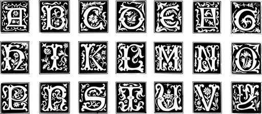 Keywords: monogram set initials alphabet block squares letters decorative capital upper case elegant vintage antique black and white