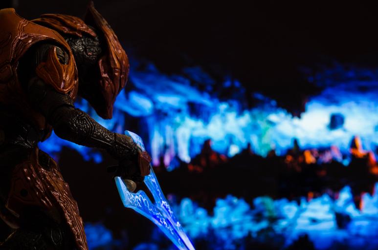 Keywords: monster alien action figure science fiction halo elite arbiter blue backgroung