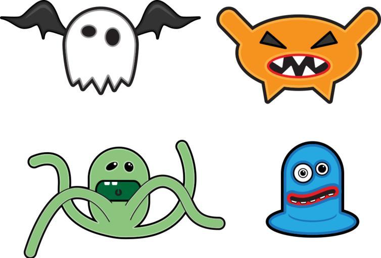 Keywords: monsters creatures cartoons scary horror creepy collection spooky characters comic icon