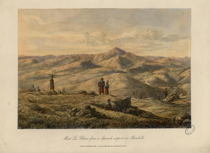 Keywords: Mont de la Rhune depuis un avant-poste espagnol sur le Mandalé Mont La Rhune from a Spanish outpost on Mandalle - Fonds Ancely - B315556101 A BATTY 2 086.jpg 25 gravures sur cuivre aquarellées 1 carte dessinée et gravée par B R Baker imprimée par Rowney et Forster lettre par J Netherclift - Toutes portent la mention London published May 1823 by John Murray Albemarle Street Il existe une traduction française dactylographiée réalisée par Renée Fourcade et déposée au Musée Basque de Bayonne Il existe une traduction française dactylographiée réalisée par Renée Fourcade et déposée au Musée Basque de Bayonne Double en couleurs du A-BATTY 1 Ancely René 1876 - 1966 Possesseur eng public domain domaine public B315556101_A_BATTY_2_086 jpg image/jpeg 1 f de pl gr s c ; 29 cm Murray John 1808-1892 Editeur Baker Benjamin 17 -18 ; graveur Graveur Clowes William Imprimeur Zilwood C Libraire http //numerique bibliotheque toulouse fr/collect/general/index/assoc//ark /74899/B315556101_A_BATTY_2_086 dir/B315556101_A_BATTY_2_086 jpg Bibliothèque municipale de Toulouse A-BATTY 2-16 Creator Robert Batty http //catalogues toulouse fr/web2/tramp2 exe/do_keyword_search/log_in setting_key BMT1 servers 1home query p000046 vignette http //numerique bibliotheque toulouse fr/collect/general/index/assoc//ark /74899/B315556101_A_BATTY_2_086 dir/B315556101_A_BATTY_2_086_thumb jpeg 1823 Mont de la Rhune depuis un avant-poste espagnol sur le Mandalé Mont La Rhune from a Spanish outpost on Mandalle B315556101_A_BATTY_2_086 woodblock print - copper engraving - engraving - colors Mountains of France in art Rifles in art Remote views of Larrun Historical images of the Basque Country Historical images of Pyrénées-Atlantiques History of Pyrénées Robert Batty Soldiers Mountains of Pyrénées-Atlantiques Landscape paintings