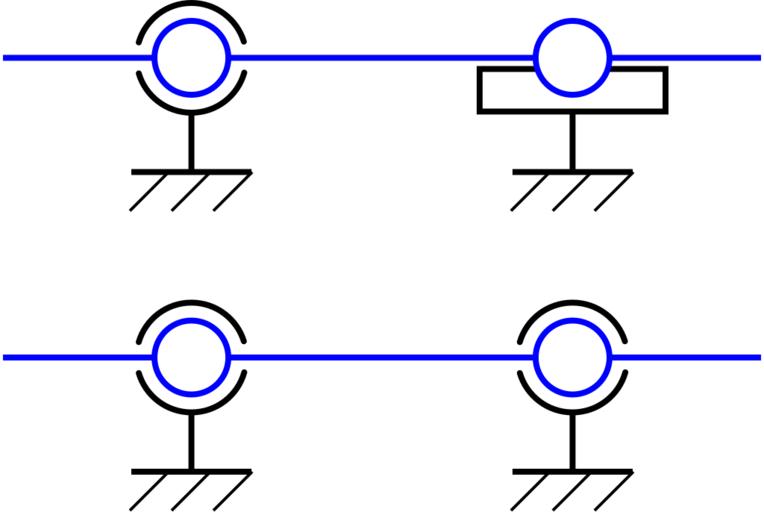 Keywords: Montage roulements schema cinematique.svg fr Schéma cinématique d'une liaison pivot réalisée par des roulements haut par deux roulements à billes à contact radial ; bas par deux roulements à billes à contact oblique ou par deux roulements à rouleaux coniques montés en opposition en O ou en X en Kinemati diagram of a hinge joint made with two roller bearings top two ball bearings with radial contact; bottom two ball bearings with angular contact or two tapered roller bearings with an opposition arrangement O or X 2016-10-04 own Cdang other versions inkscape cdang cc-zero Drawings of ball bearings Drawings of roller bearings ISO 3952 kinematic diagrams |