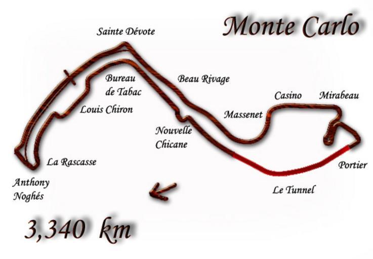 | Keywords: Monte Carlo 2003.jpg Diagram of the Monte Carlo Circuit following changes made in 2003 Used for Monaco Grands Prix from 2003 to 2006 http //cs wikipedia org/wiki/Soubor Monte_Carlo_2003 jpg 2005-07-21 Jiří Žemlička Freely licenced via Czech Wikipedia site see Source Monte Carlo Formula 1 track map svg Monte Carlo Formula 1 track map with streets svg Circuit de Monaco circuit maps cs Czech Wikipedia Jiří Žemlička | ||||