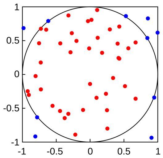 Keywords: MonteCarloIntegrationCircle.svg en An illustration of Monte-Carlo Integration own derived in Inkscape from Image MonteCarloIntegrationCircle svg User Yoderj Mysid 2014-09-24 Algorithms Integration Cluster diagrams Cc-zero