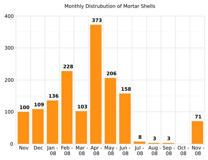 Keywords: MonthlyMortarHits.svg en Monthly mortar hits in Israel Data from http //www mfa gov il/MFA/Terrorism-+Obstacle+to+Peace/Palestinian+terror+since+2000/Missile+fire+from+Gaza+on+Israeli+civilian+targets+Aug+2007 htm Israel Ministry of Foreign Affairs http //www donga com/e-county/sssboard/board php tcode 01001 s_work view no 343743 p_page 1 p_choice p_item p_category cached Graph created using http //nces ed gov/nceskids/createagraph/ own Liftarn 2009-01-08 Statistics of the Israeli-Palestinian conflict 2008-2009 Gaza War |