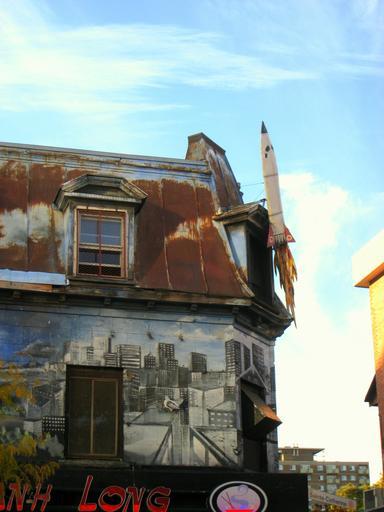 Keywords: Montreal oddity.JPG Building facade public art in Montreal Canada Own 2008-10-15 Daderot Public domain Public art in Montreal Foufounes électriques