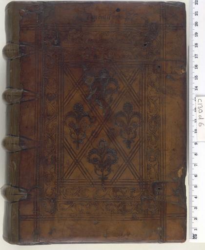 Keywords: -Monumenta Ordinis Minorum.- (4 pt. -Melchior Lotter- Leipzig, 1506, 09?-) - Upper cover (c130d6).jpg Style Panel design Single tools design; Caption Upper cover; Colour Brown; Edge Unspecified exhibition history Decorative Technique Tooled in blind; Cover Material Calf Traces of 2 pairs of clasps object history Text 16c; Unspecified; Unspecified object type Cc-zero place of creation Binding Germany place of discovery Unspecified British Library image http //www bl uk/catalogues/bookbindings/LargeImage aspx RecordId 020-000007646 ImageId ImageId 43428 Copyright BL Monumenta Ordinis Minorum 4 pt Melchior Lotter Leipzig 1506 09 Uploaded with GWToolset Monumenta Ordinis Minorum 4 pt Melchior Lotter Leipzig 1506 09 - Upper cover c130d6 http //www webarchive org uk/bldatasets/bindings/8077_4 jpg Bookbinding 16th-century bookbinding British Library Bookbindings -Monumenta Ordinis Minorum.- (4 pt. -Melchior Lotter- Leipzig, 1506, 09?-) - Upper cover (c130d6).jpg Style Panel design Single tools design; Caption Upper cover; Colour Brown; Edge Unspecified exhibition history Decorative Technique Tooled in blind; Cover Material Calf Traces of 2 pairs of clasps object history Text 16c; Unspecified; Unspecified object type Cc-zero place of creation Binding Germany place of discovery Unspecified British Library image http //www bl uk/catalogues/bookbindings/LargeImage aspx RecordId 020-000007646 ImageId ImageId 43428 Copyright BL Monumenta Ordinis Minorum 4 pt Melchior Lotter Leipzig 1506 09 Uploaded with GWToolset Monumenta Ordinis Minorum 4 pt Melchior Lotter Leipzig 1506 09 - Upper cover c130d6 http //www webarchive org uk/bldatasets/bindings/8077_4 jpg Bookbinding 16th-century bookbinding British Library Bookbindings |