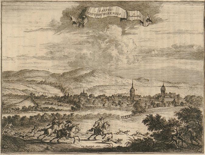 | Keywords: Monumenta Paderbornensia-Detmold.jpeg de Der Teutoburger Wald und Detmold la 1 Saltus Teutoburgiensis 2 Dethmoldia Monumenta Paderbornensia 2 Ausg 1672 S 38 http //digital ub uni-paderborn de/eab/content/pageview/222075 UB Paderborn Vorlage creator Johann Georg Rudolphi Stich creator Romeyn de Hooghe 1672 Monumenta Paderbornensia Johann Georg Rudolphi Engravings by Romeyn de Hooghe 1672 engravings Detmold in the 17th century Teutoburg Forest PD-old-100 | ||||