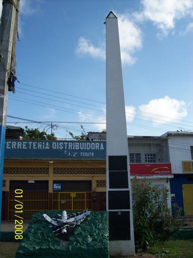 | Keywords: Monumento a la campaña sanitaria 1.jpg es Monumento al zancudo muerto El 02 de diciembre de 1945 se inició en este lugar la campaña antipaludica con DDT a escala nacional con participacion del Gobierno de Carabobo y la División de Malariología del Ministerio de Sanidad y Asistencia Social a través de los Doctores Arnoldo Gabaldón y Enrique Tejera own Geliersanta GFDL relicense Morón Venezuela Obelisks in Venezuela Malaria in art | ||||
