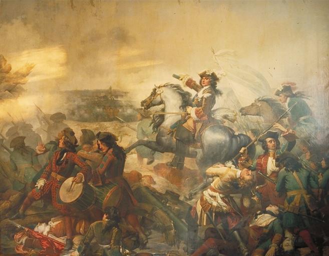 Keywords: Monvoisin - La bataille de Denain.jpg Artwork Creator Raymond Quinsac Monvoisin Claude Louis Hector de Villars lidera las tropas francesas contra los austro-holandeses del príncipe Eugenio de Saboya en la batalla de Denain episodio de la Guerra de Sucesión Española que le permitió a los franceses negociar una paz favorable a pesar de la serie de derrotas que habían sufrido anteriormente 1835 oil on canvas cm 462 545 Institution Musée des Beaux-Arts de Bordeaux depósito accession number Bx E 687 object history credit line Salon de Paris 1836 00650003345 PD-old-100 DEFAULTSORT Denain La bataille de Raymond Quinsac Monvoisin Claude-Louis-Hector de Villars 19th-century paintings of battles Musée des Beaux-Arts de Bordeaux Battle of Denain 1835 oil on canvas paintings in France 1830s paintings from France PD-old files by User Jimmy from fr wikipedia |