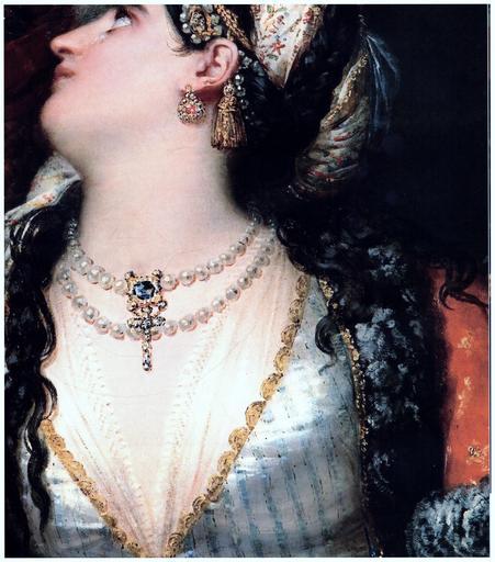 Keywords: Monvoisin, Raymond - Ali Pacha y Vasiliki -1832 ost 345x272 PalCous frg3.2.jpg Artwork Creator Raymond Monvoisin Fragmento del cuadro El albanés musulmán Alí Pashá de Yánina fue el gobernante de los Balcanes cuando estos formaban Rumelia una provincia del imperio otomano; Kira Kyra Vasiliki una griega y cristiana era su esposa favorita 1832 oil on canvas cm 345 272 Institution Palacio Cousiño object history El cuadro fue expuesto por primera vez en el Salón de París de 1833 y estuvo entre la veintena de pinturas que Monvoisin se llevó consigo cuando zarpó hacia Chile credit line Varias variaciones que Monvoisin habría hecho sobre el tema de Alí Pacha y Vasiliki han aparecido en subastas accession number scan de Raimundo Monvoisin Origo Ediciones 2008 PD Ali Pasha Vassiliki 1832 <gallery>File Monvoisin Raymond - Ali Pacha y Vasiliki -1832 ost 345x272 PalCous 1 jpg File Monvoisin Raymond - Ali Pacha y Vasiliki -1832 ost 345x272 PalCous frg1 jpg File Monvoisin Raymond - Ali Pacha y Vasiliki -1832 ost 345x272 PalCous frg2 jpg</gallery> Other pictures of Ali Pasha Vassiliki attributed to Monvoisin<gallery>File Monvoisin Raymond - Ali Pacha et Vasiliki -wtrclor pencil 55x51 jpg File Monvoisin Raymond - Ali Pasha with his favourite mistress Lira Vassiliki -sothebys2015 jpg File Monvoisin Raymond - Ali Pacha et Vasiliki -Gros Delettrez2014 jpg</gallery> Custom license marker 2015 09 20 PD-old-100 Ali Pasha Raymond Quinsac Monvoisin 1832 paintings Paintings in the Palacio Cousiño |